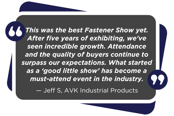 International Fastener Expo is the largest and most established gathering of the fastener industry in North America and 69% of exhibitors say it is the “must-exhibit at” event. Why? Because they know it is the #1 show in North America where customers and prospects come to see you, the supplier. At the International Fastener Expo, suppliers like yourself will find qualified eager attendees looking for new sources and solutions to a myriad of manufacturing and fastening applications. All in one place. No other fastener expo can deliver the type of qualified audience that the International Fastener Expo does every year.